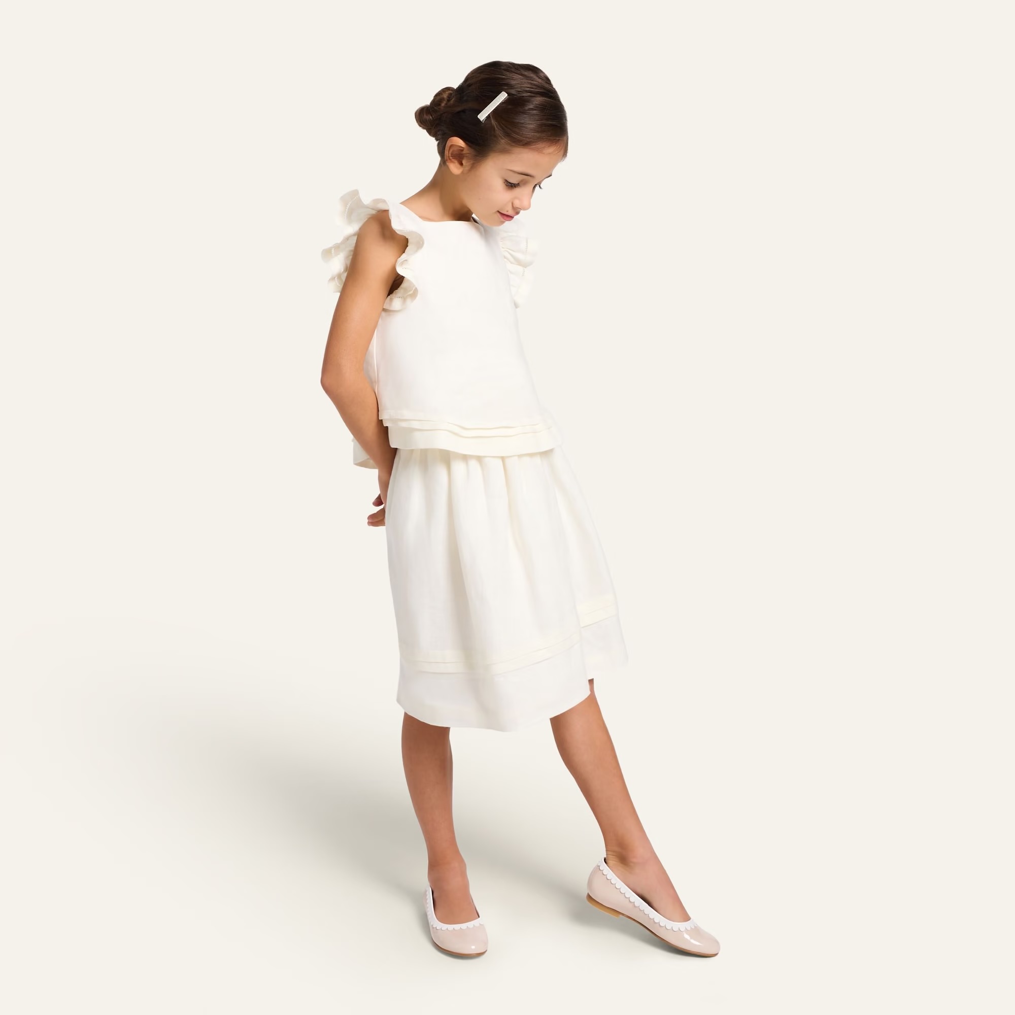 Jacadi Paris sublime l’univers de la cérémonie avec un vestiaire blanc lumineux, où chaque détail célèbre l’élégance et le raffinement.