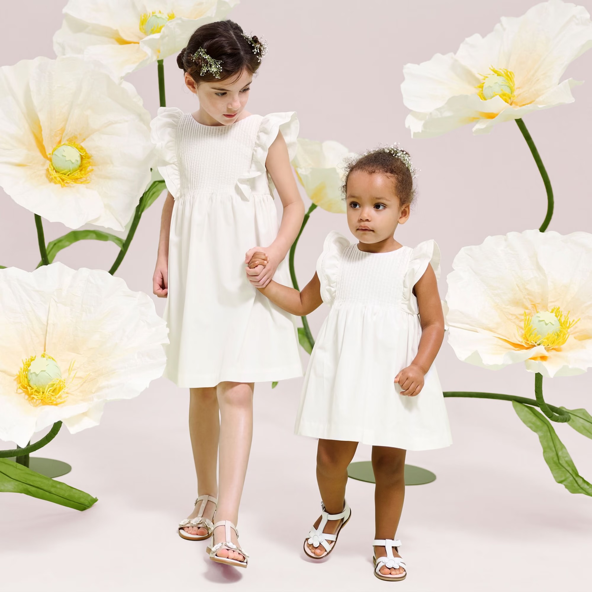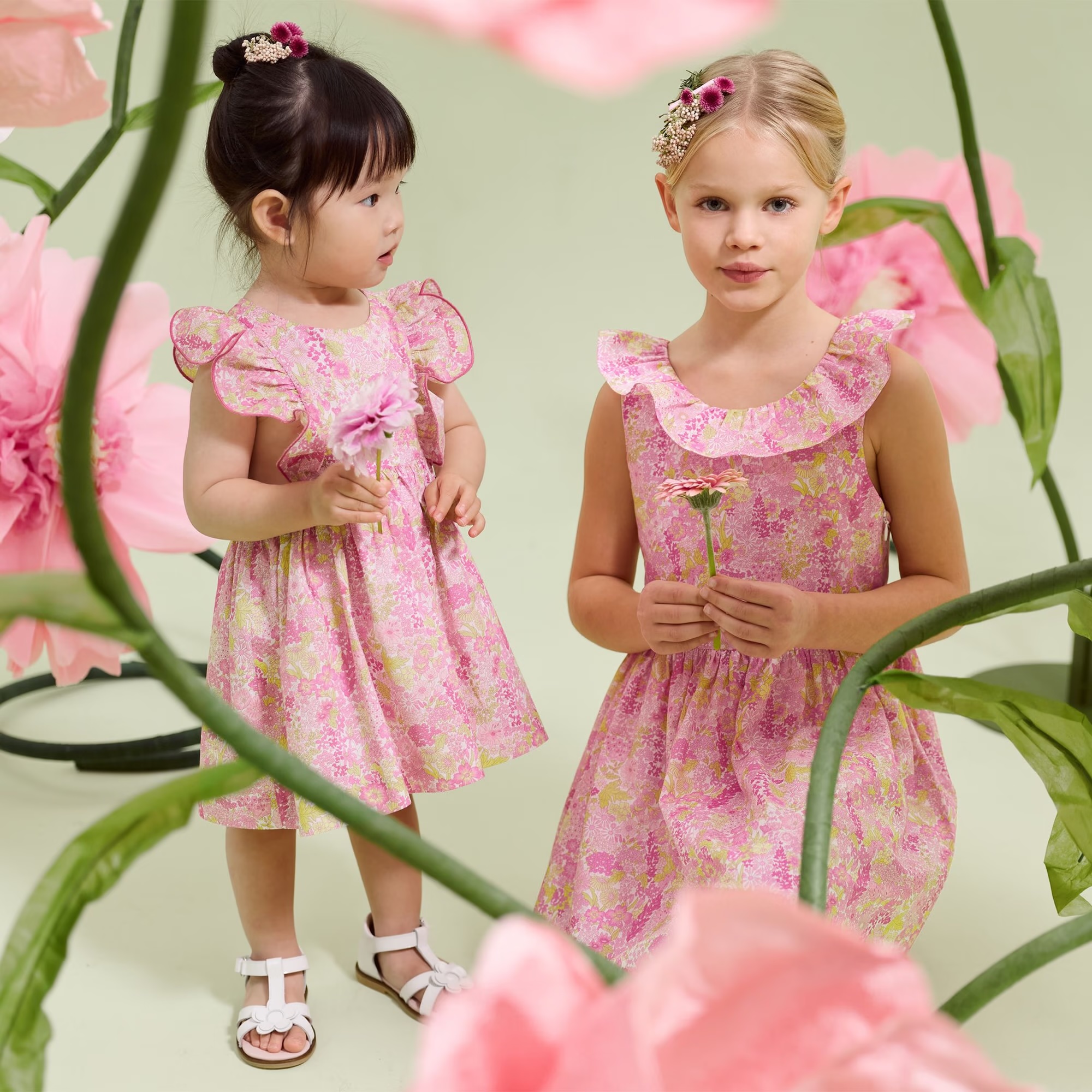 Jacadi Paris révèle son savoir-faire avec des tenues de cérémonie romantiques et contemporaines, mêlant popeline délicate, lin lumineux dans une palette de pastels doux, ponctués d’imprimés Liberty tendres et frais.