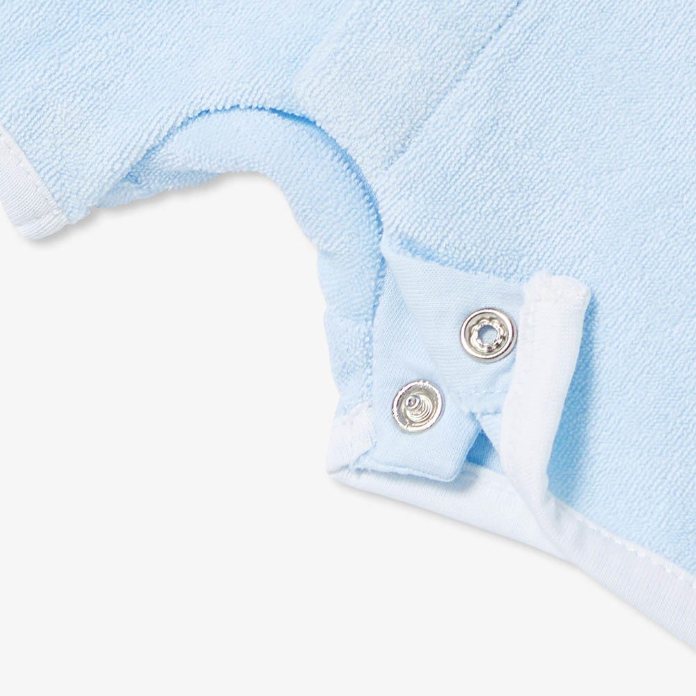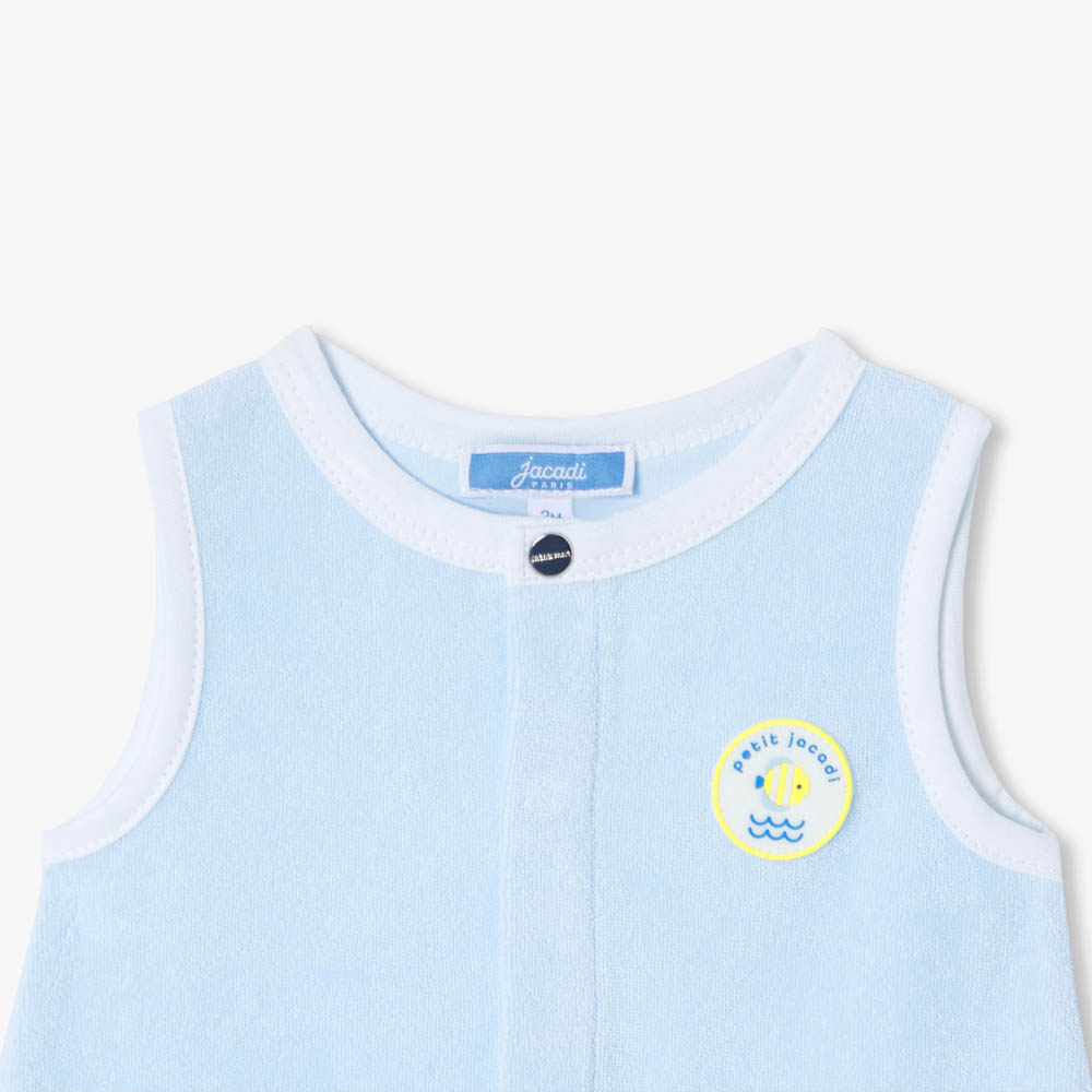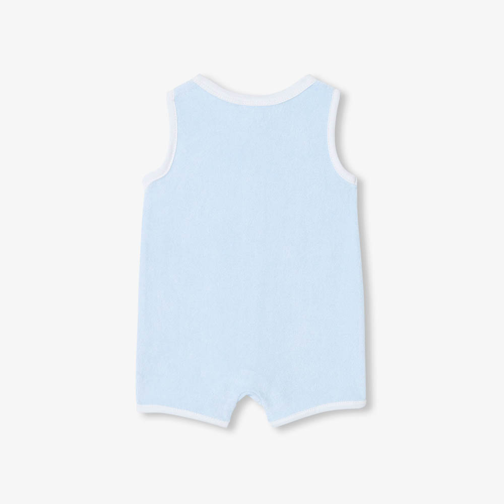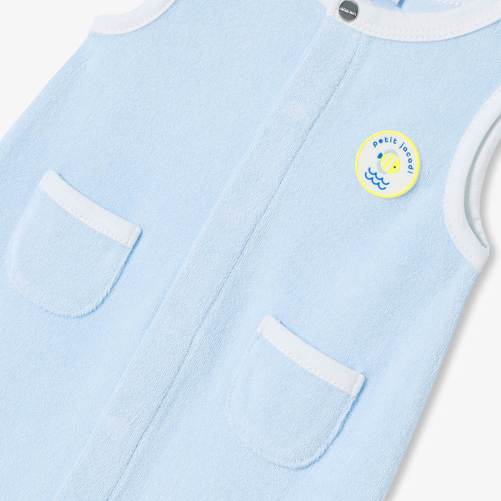 Matière iconique de la belle saison, la barboteuse bébé garçon mise sur l’élégance décontractée du coton éponge. Souple, douce et légère, biais contrastés et poches plaquées instillent une touche rétro minimaliste à cette pièce confortable et pleine de style idéale pour le plein été.