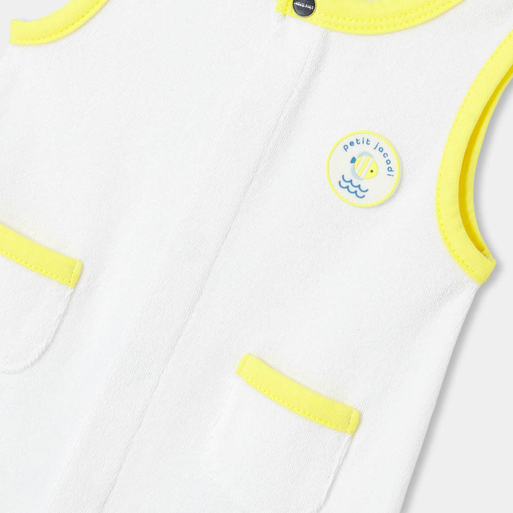 Matière iconique de la belle saison, la barboteuse bébé garçon mise sur l’élégance décontractée du coton éponge. Souple, douce et légère, biais contrastés et poches plaquées instillent une touche rétro minimaliste à cette pièce confortable et pleine de style idéale pour le plein été.