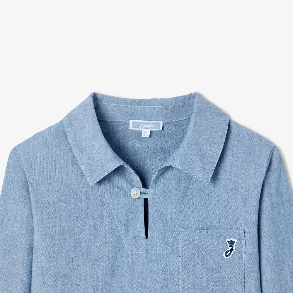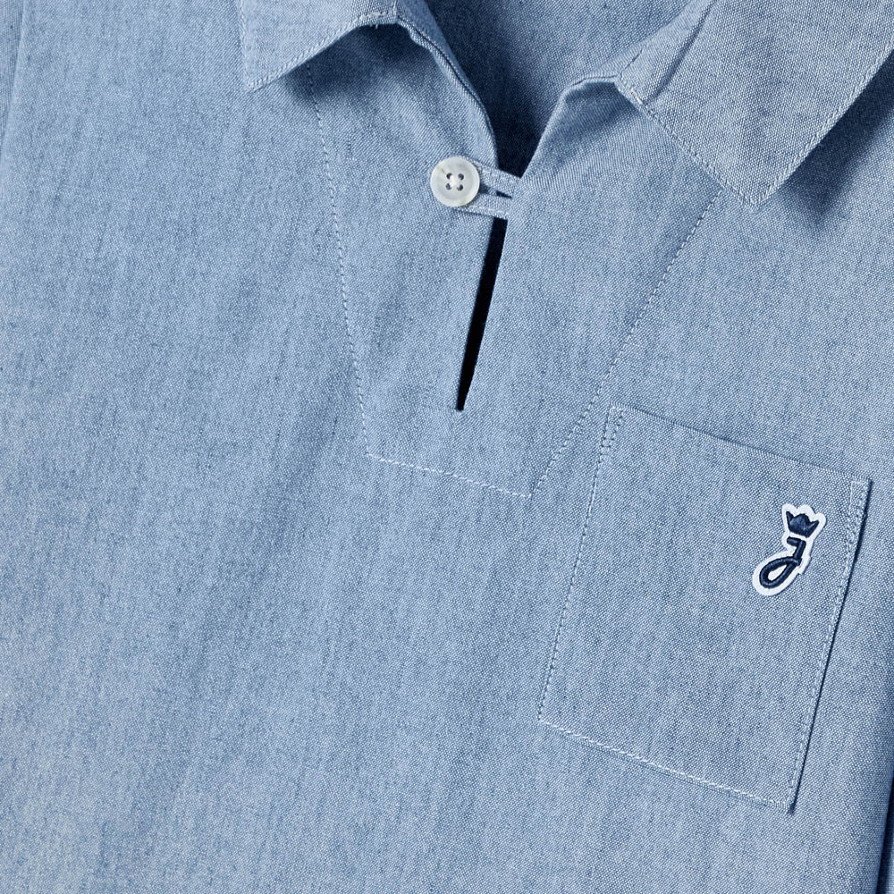 Inspirée du vestiaire marin, cette chemise vareuse enfant déploie tout son chic pour l’été. En chambray léger, sa coupe droite légèrement ample assure confort et liberté de mouvement. Col fendu boutonné et poche poitrine signent une pièce versatile à porter avec un short, ou un denim pour les balades au bord de l’océan et les après-midis en famille.