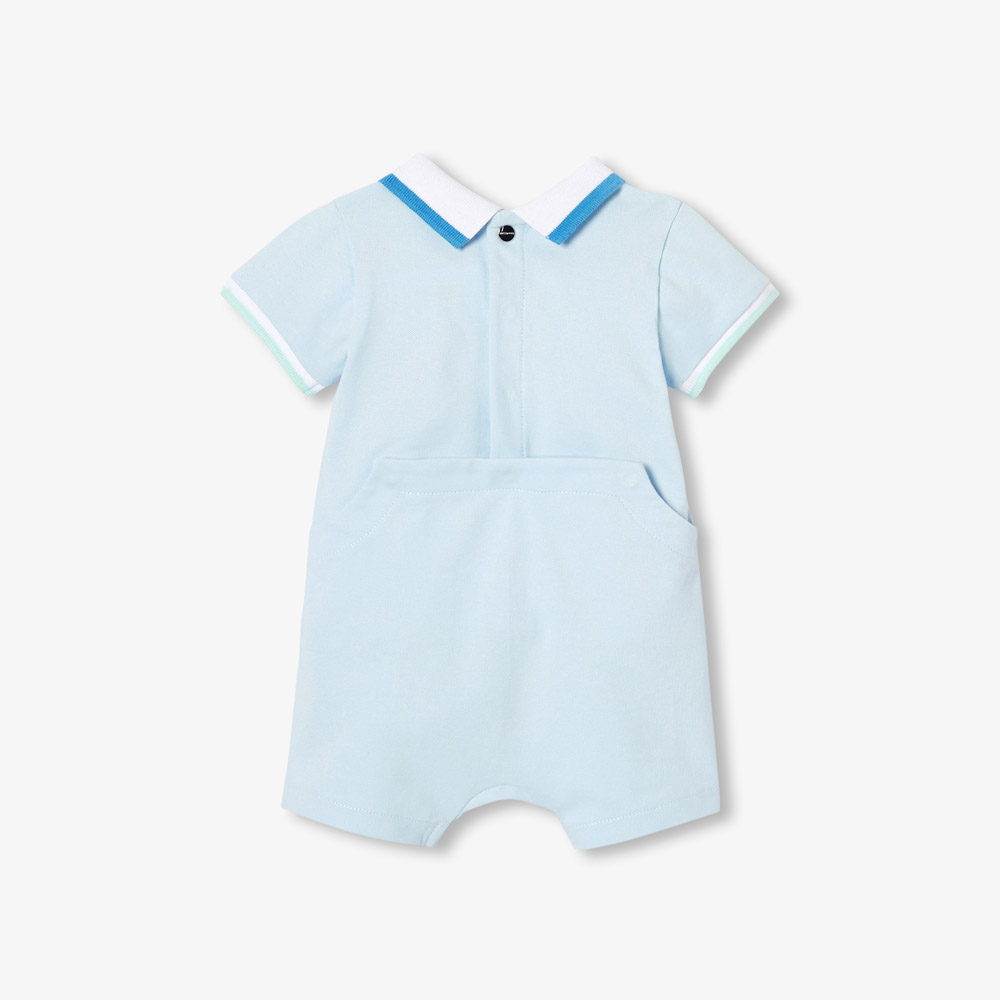 Sport chic et casual, le combishort bébé garçon prend la forme d’un élégant polo pour l’été. Au summum du confort grâce à son piqué de coton doux et souple, col polo et badge sur poitrine finalisent cet incontournable à offrir au nouveau-né.