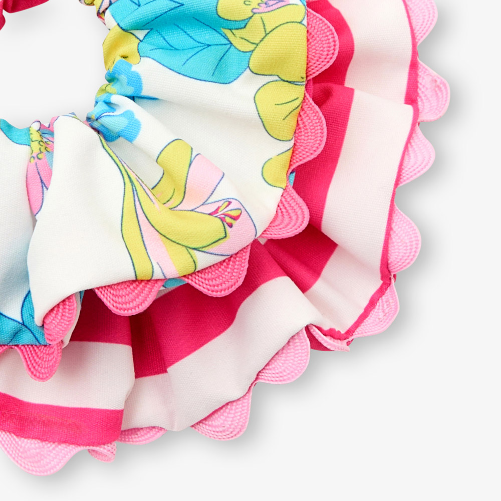 Rayé pour l’un, fleuri pour l’autre, ces chouchous enfant fille dynamiseront les coiffures estivales. Portés dans les cheveux ou au poignet, ils s’accorderont joliment à la collection de vêtements.