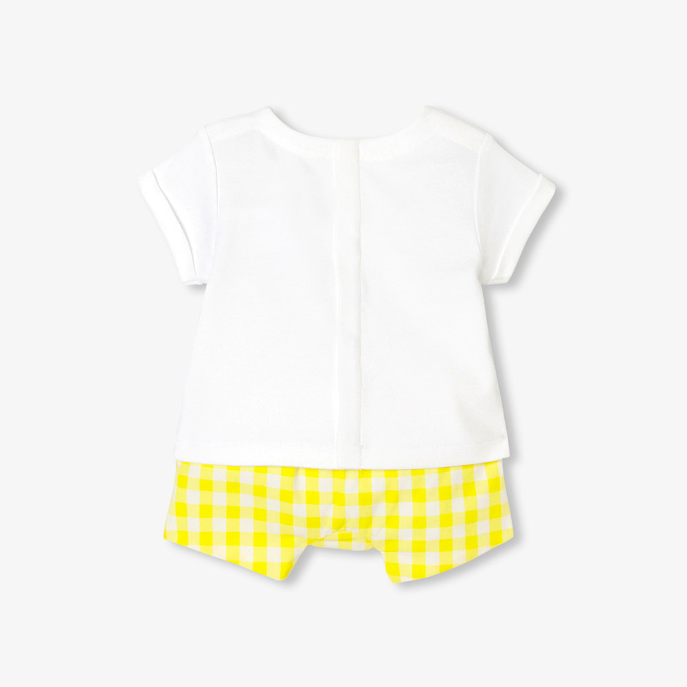 Imaginé pour le quotidien et les vacances, cet ensemble bébé garçon promet un été confort. Mixant la modernité d’un t-shirt ludique et d’un short en popeline vichy, ce tandem frais et lumineux suivra bébé au gré de vos échappées estivales.
