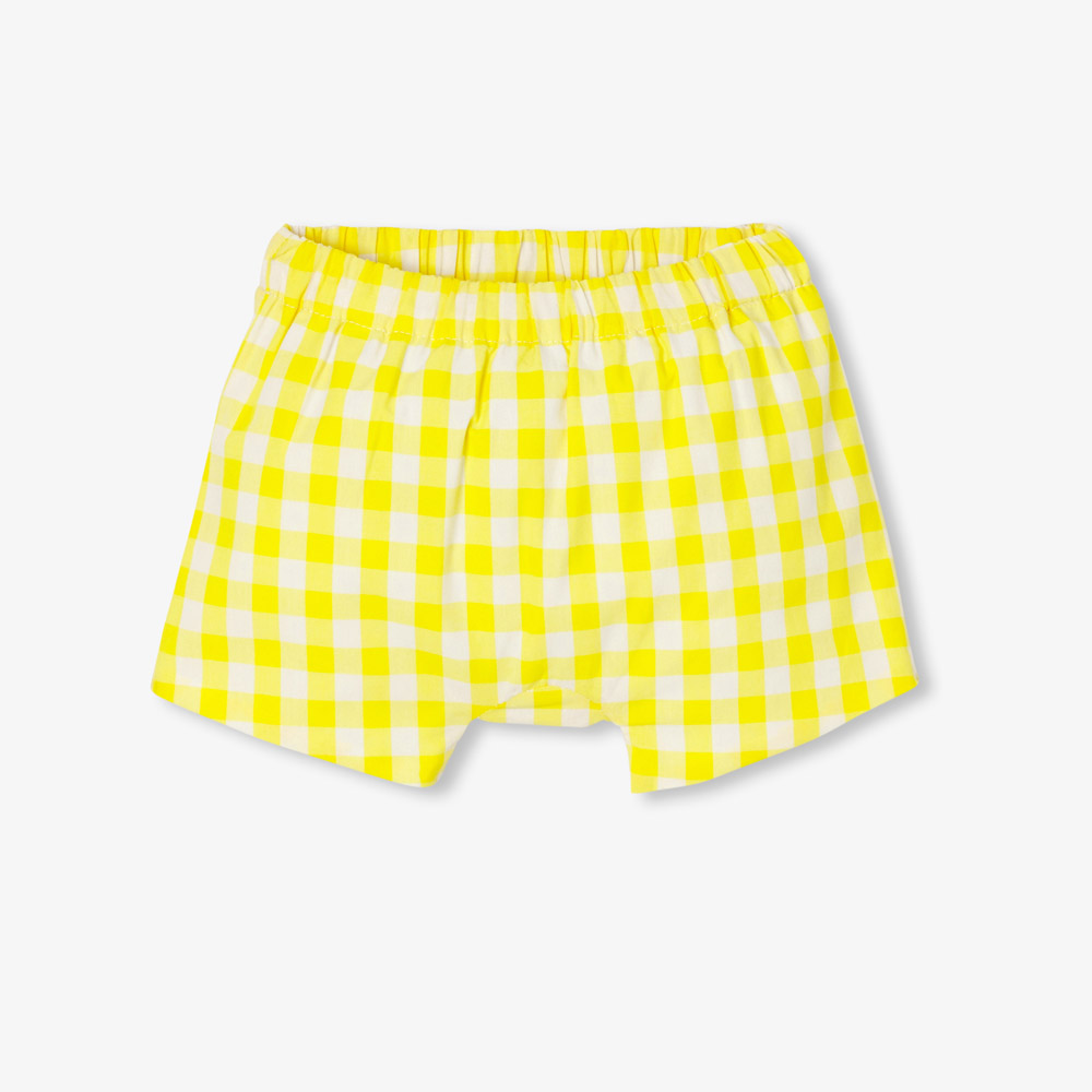 • – Short en popeline vichy doublé à taille élastiquée