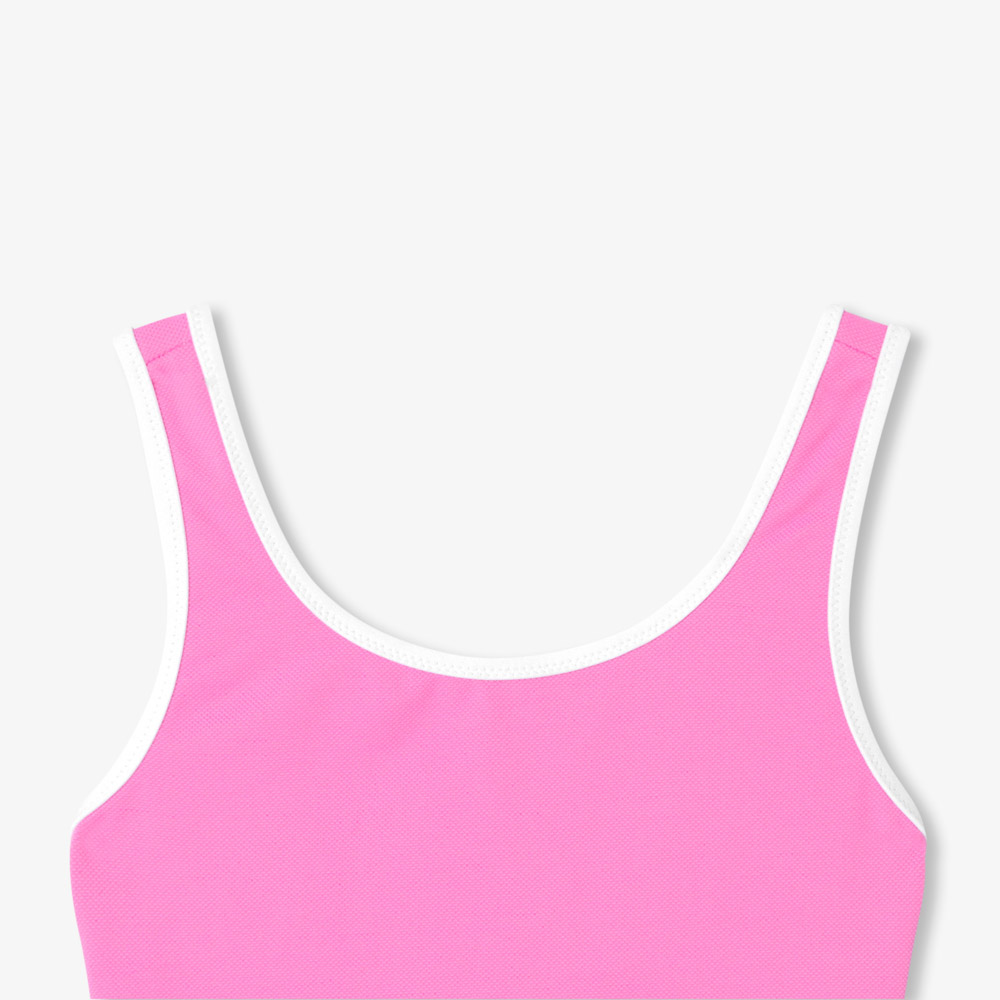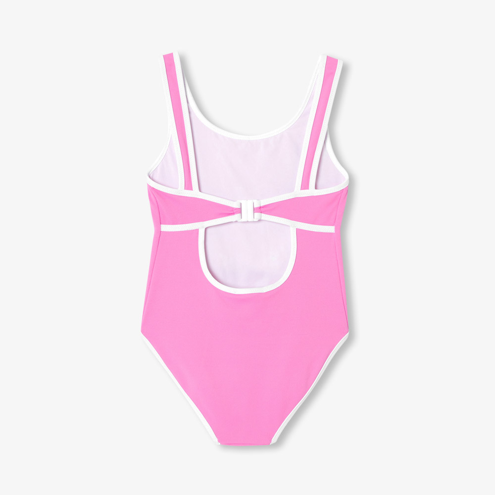 Un été rétro chic et coloré avec ce maillot de bain 1 pièce enfant fille. Décliné en maille piquée jaune pop ou rose dynamisant, poches plaquées à petite fleur et biais contrastés subliment ce modèle prêt pour les plongeons et les jeux de plage.
