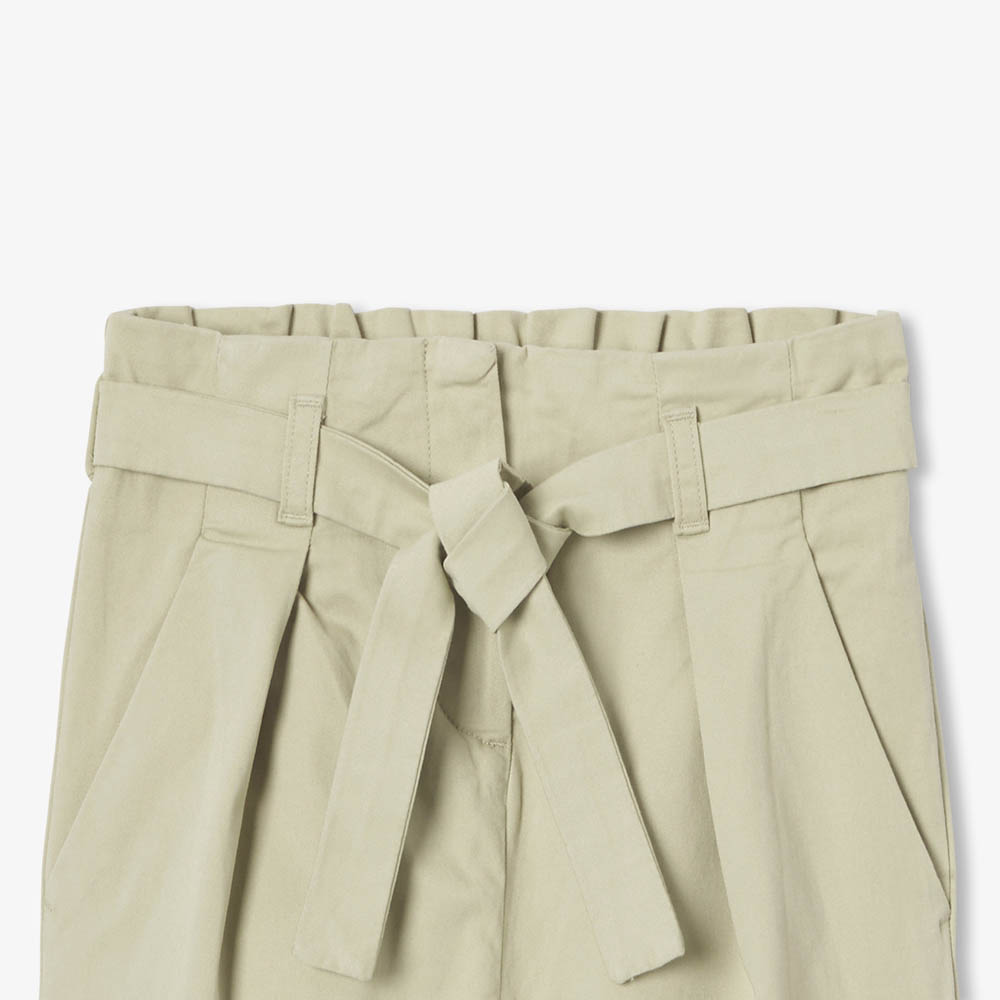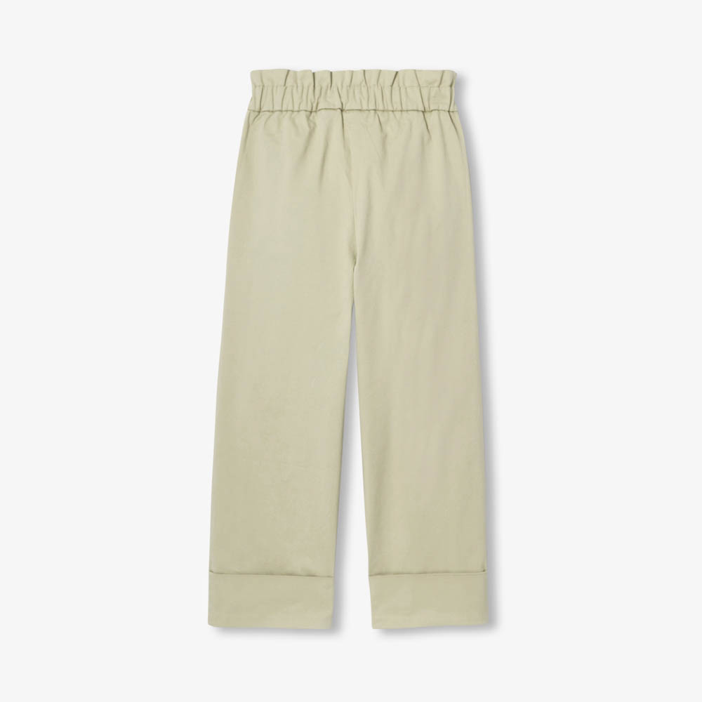 Incarnation du chic printanier, ce pantalon fille en twill léger séduit pour son coloris vert apaisant. Modernisé par une jambe large à revers et une ceinture à nouer, il allie confort et sophistication. Un incontournable à porter avec une blouse ou un t-shirt boxy et des baskets pour une silhouette tendance.