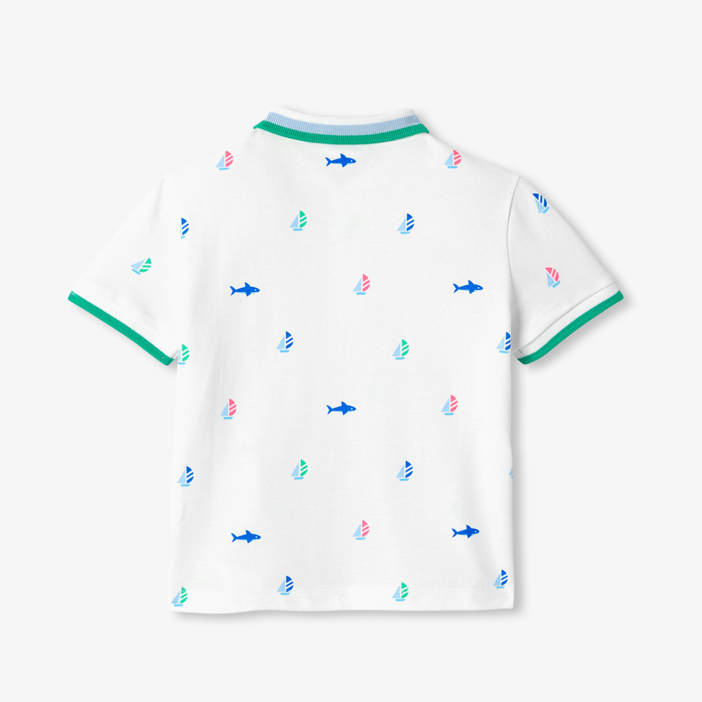 Cap sur un été chic et graphique avec ce polo enfant garçon. Confectionné en piqué de coton doux et léger, col et bas de manches en bord-côte rayés et bateaux imprimés dynamisent ce modèle qui sent bon l’été à porter avec un bermuda et des sandales pour les vacances.