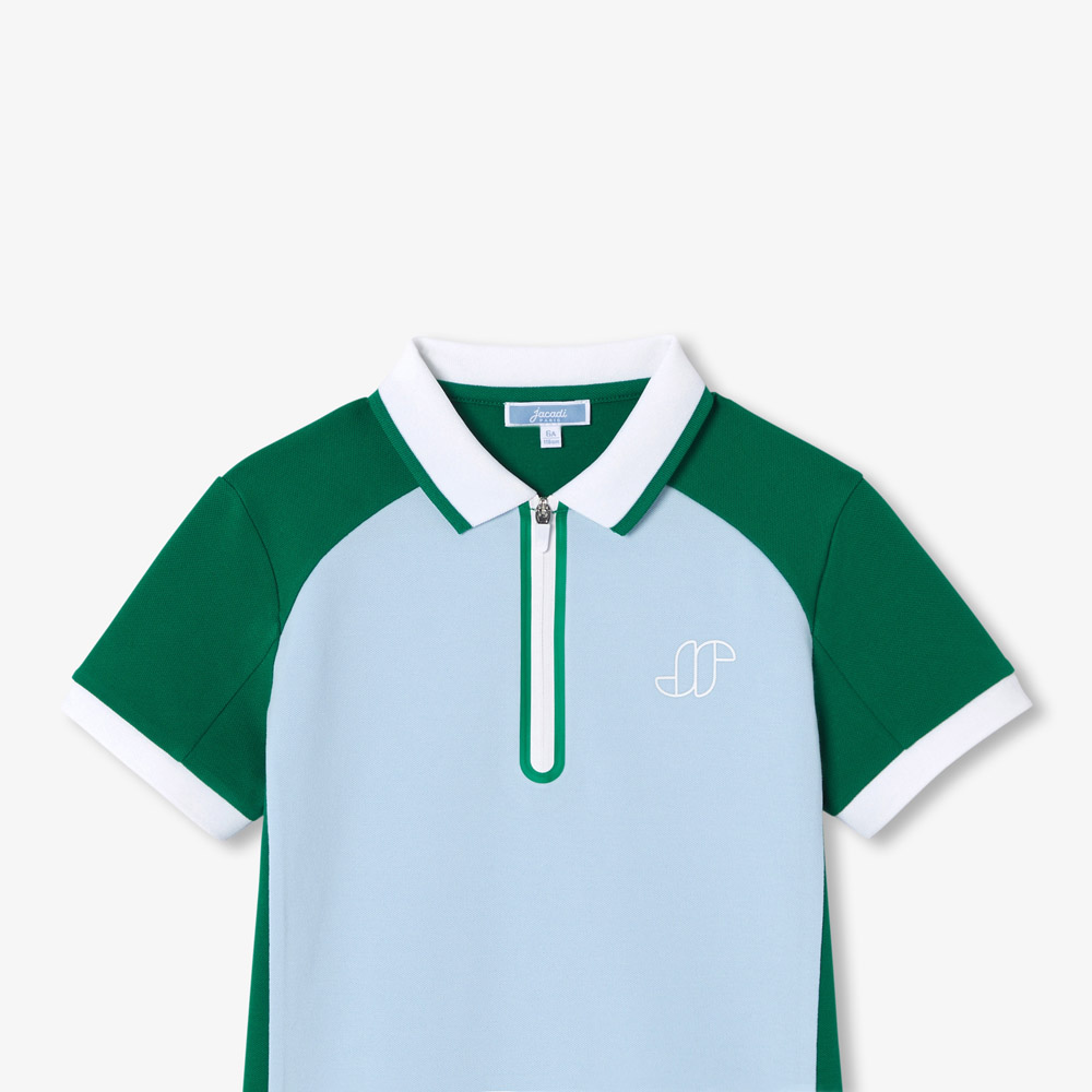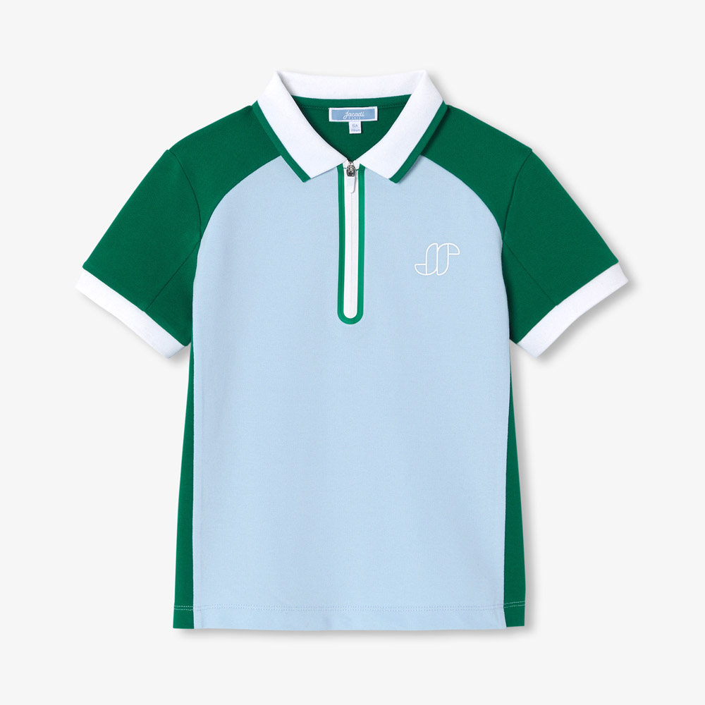 Incontournable du vestiaire, l’intemporel polo enfant garçon opte pour un look color block très contemporain. En piqué de coton fluide et facile à enfiler, col en bord-côte et patte zippée en framis dynamisent ce modèle à porter avec un jogging ou un short sur les terrains de sport et au quotidien.