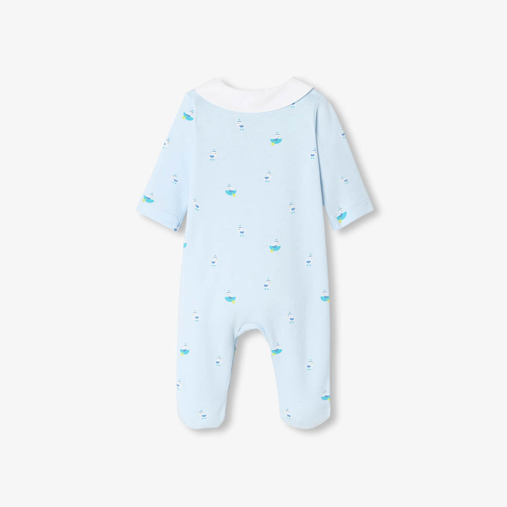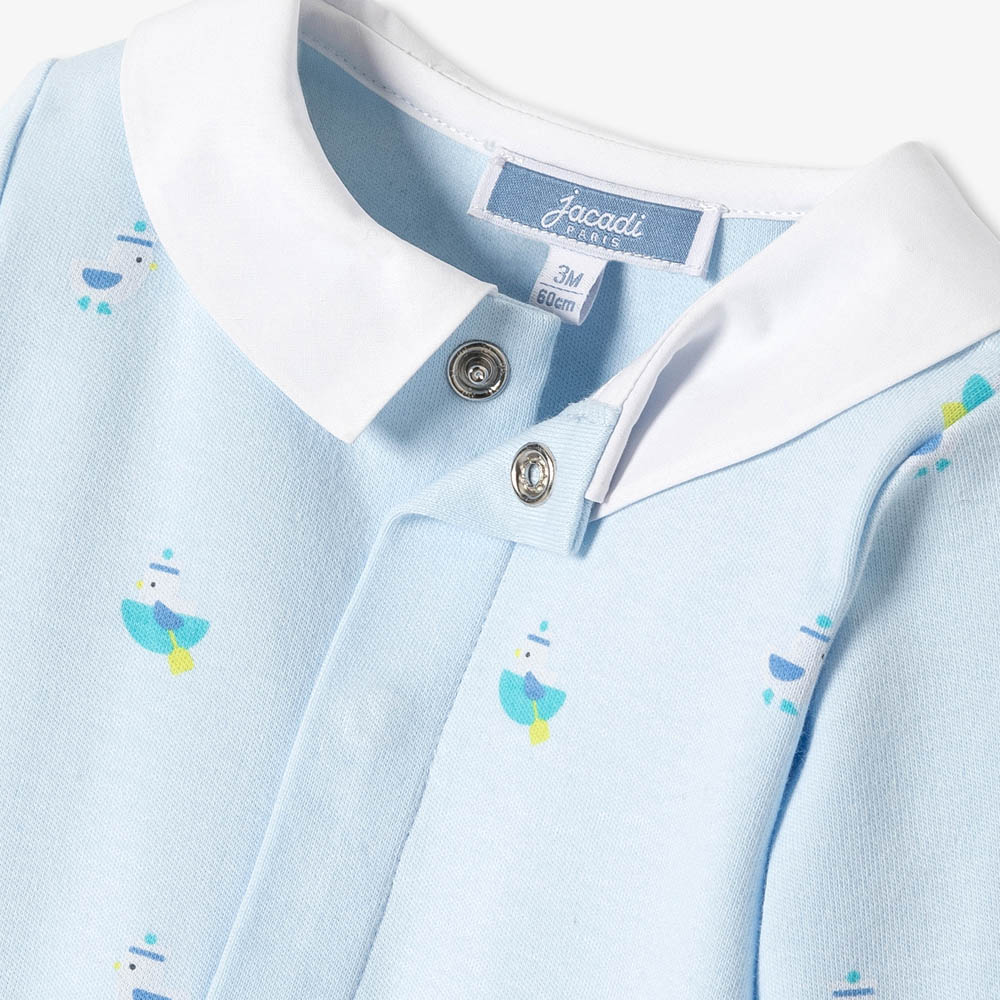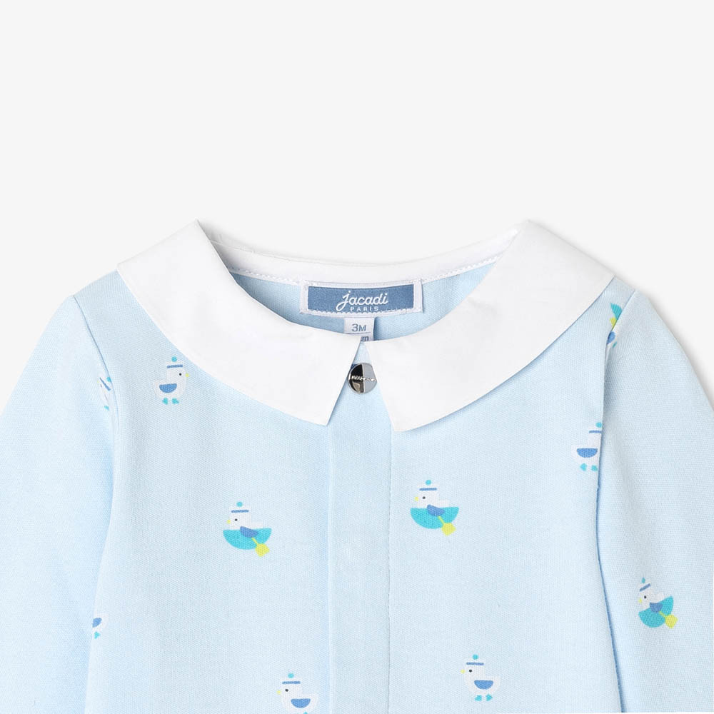 Ce pyjama bébé garçon en interlock de coton aussi chic qu’attendrissant promet de douces rêveries. Orné d’un col signature en popeline blanche et d’une envolée d’oiseaux, glissez cet indispensable souple et facile à enfiler dans son premier vestiaire d’été.