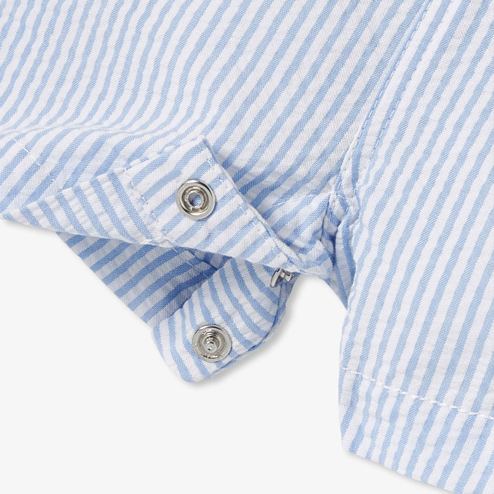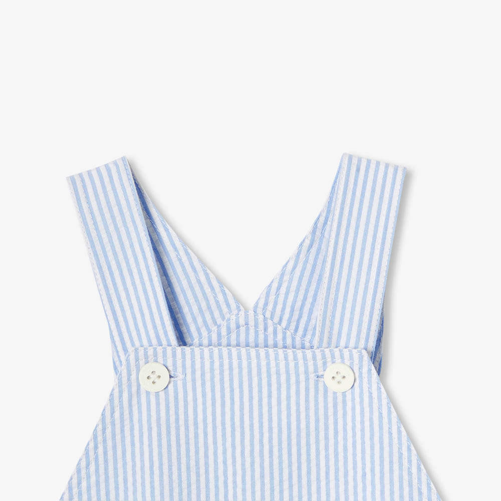 Cosy chic et graphique, la salopette short bébé garçon s’imagine dans seersucker rayé léger et respirant pour les beaux jours. Portée avec un polo et un cardigan torsadé pour une silhouette preppy, elle répondra à toutes les invitations estivales.