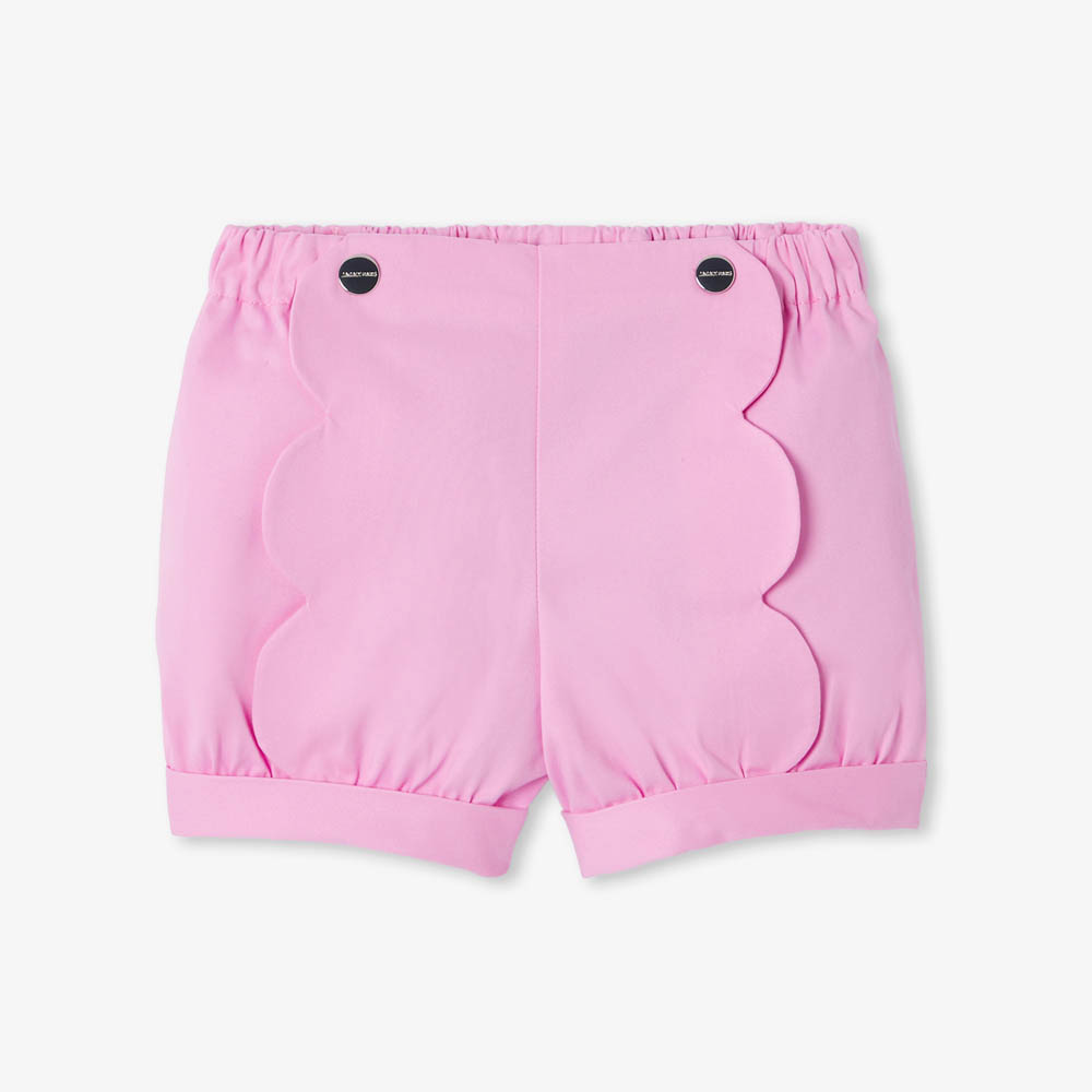 Le short bébé fille cultive une allure rétro chic avec sa coupe soignée et ses détails festonnés. Orné de rivets décoratifs façon pont, accordez cet essentiel du vestiaire à un body marinière pour une silhouette chic et parisienne.