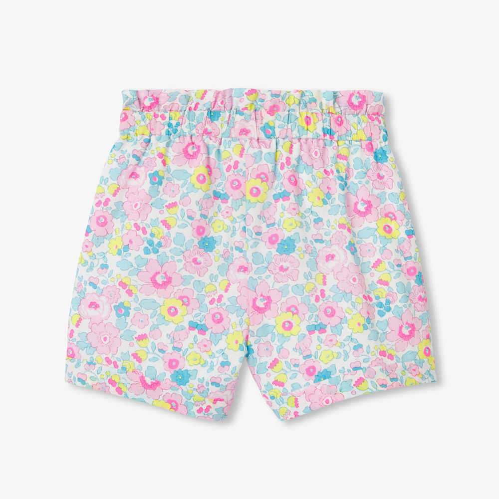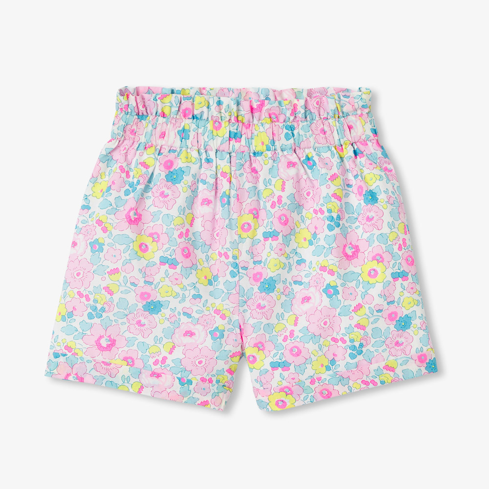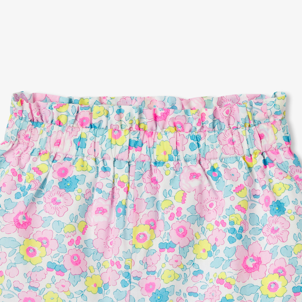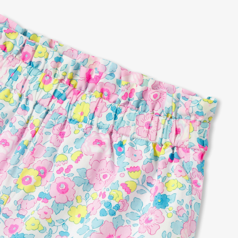 Ce short bébé fille en tissu Liberty promet une silhouette cosy chic et estivale. Taille froncée et retroussé en bas de jambe, accordez ce modèle frais et acidulé à un t-shirt et des sandales pour les vacances.