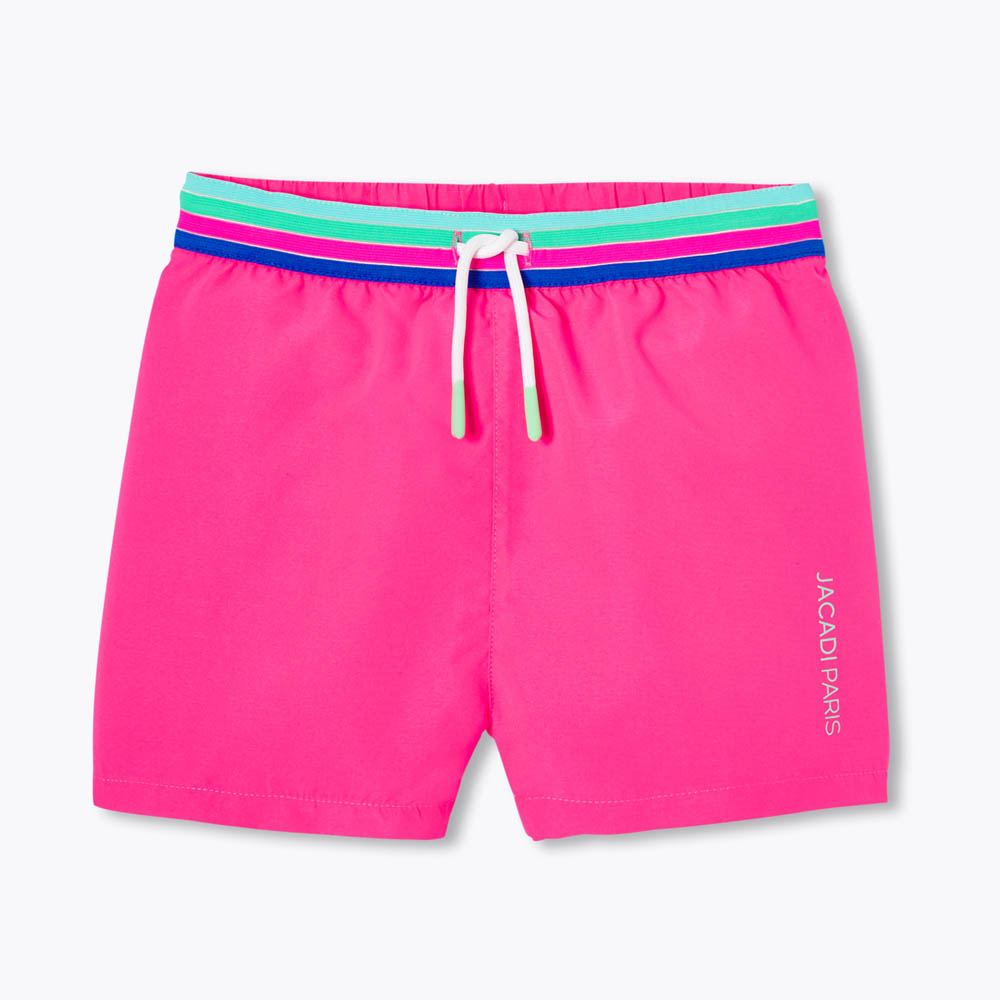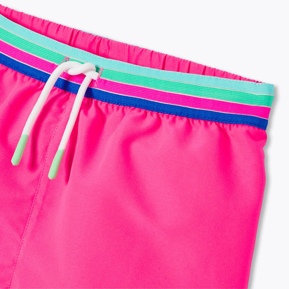 Pop et coloré, ce short de bain enfant rose fluo ne passera pas inaperçu cette saison. Doté d’une taille élastiquée rayée, à porter avec un t-shirt de protection anti-UV et une casquette à la plage ou à la piscine, glissez-le vite dans la valise pour les vacances.