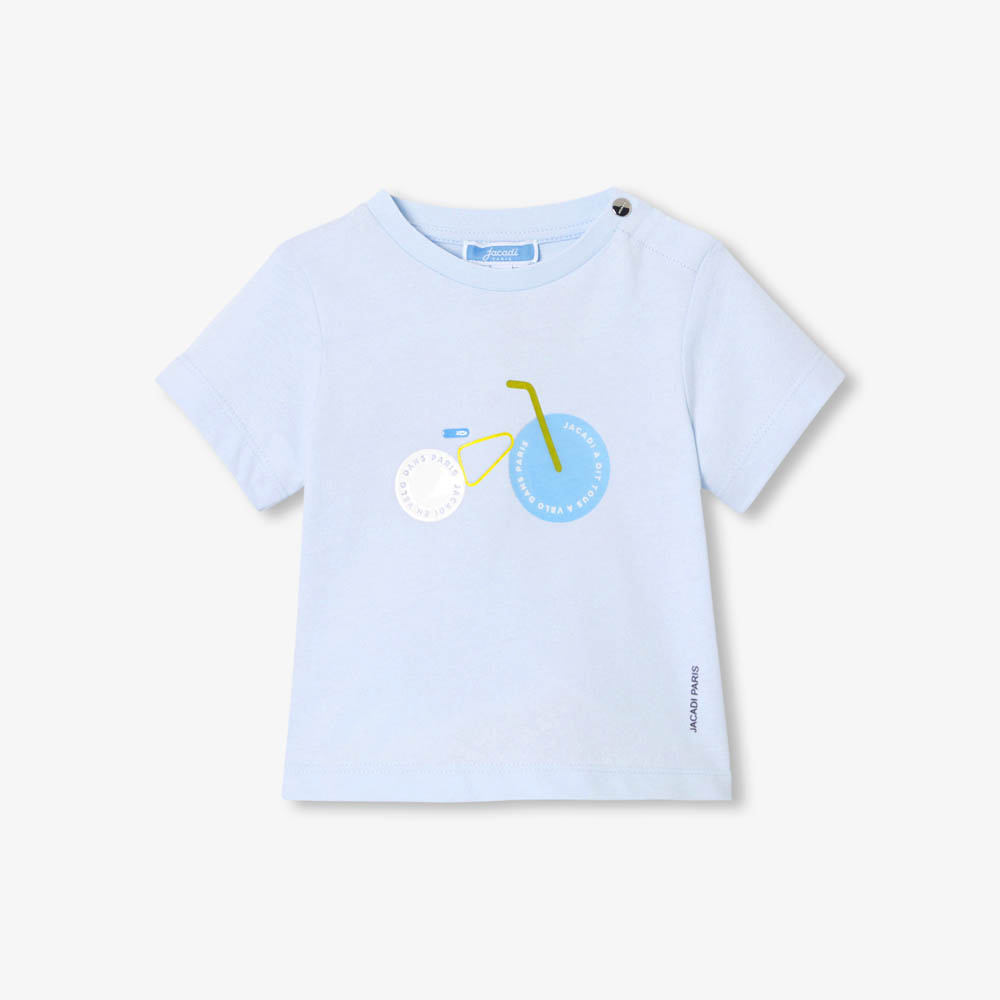 Basique du quotidien facile à porter avec un short ou un jean, le t-shirt manches courtes bébé garçon s’offre une virée citadine à vélo. Décliné dans un coloris bleu lumineux, il habillera votre garçon du printemps à l’été.