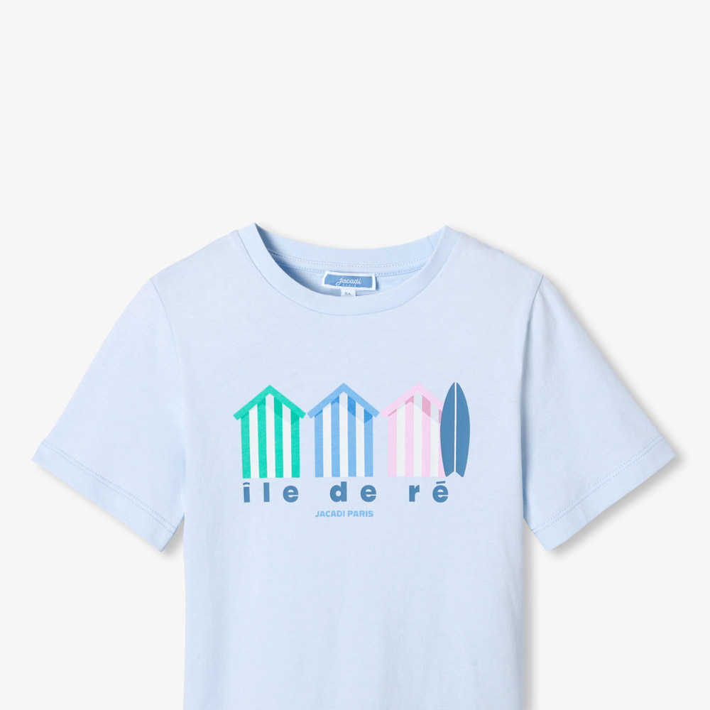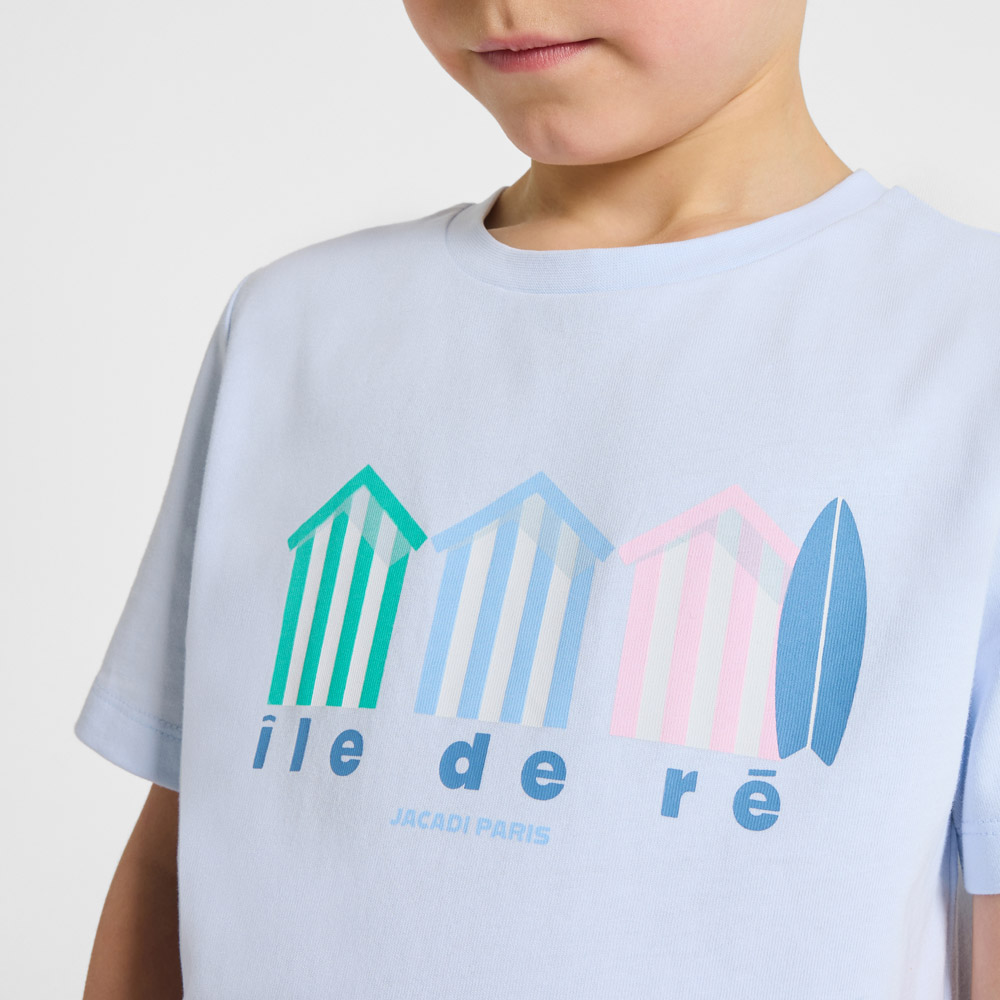 Le t-shirt enfant s’offre une escapade au bord de l’océan. En jersey de coton doux et souple, parfait pour les journées ensoleillées, ses cabines de plage apportent une touche ludique et graphique. Coupe classique, il se portera facilement avec un short pour un style chic décontracté.