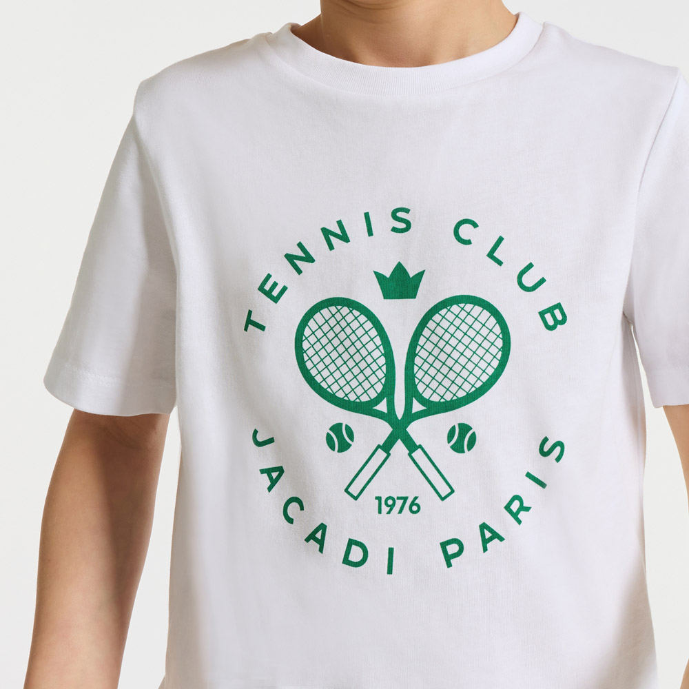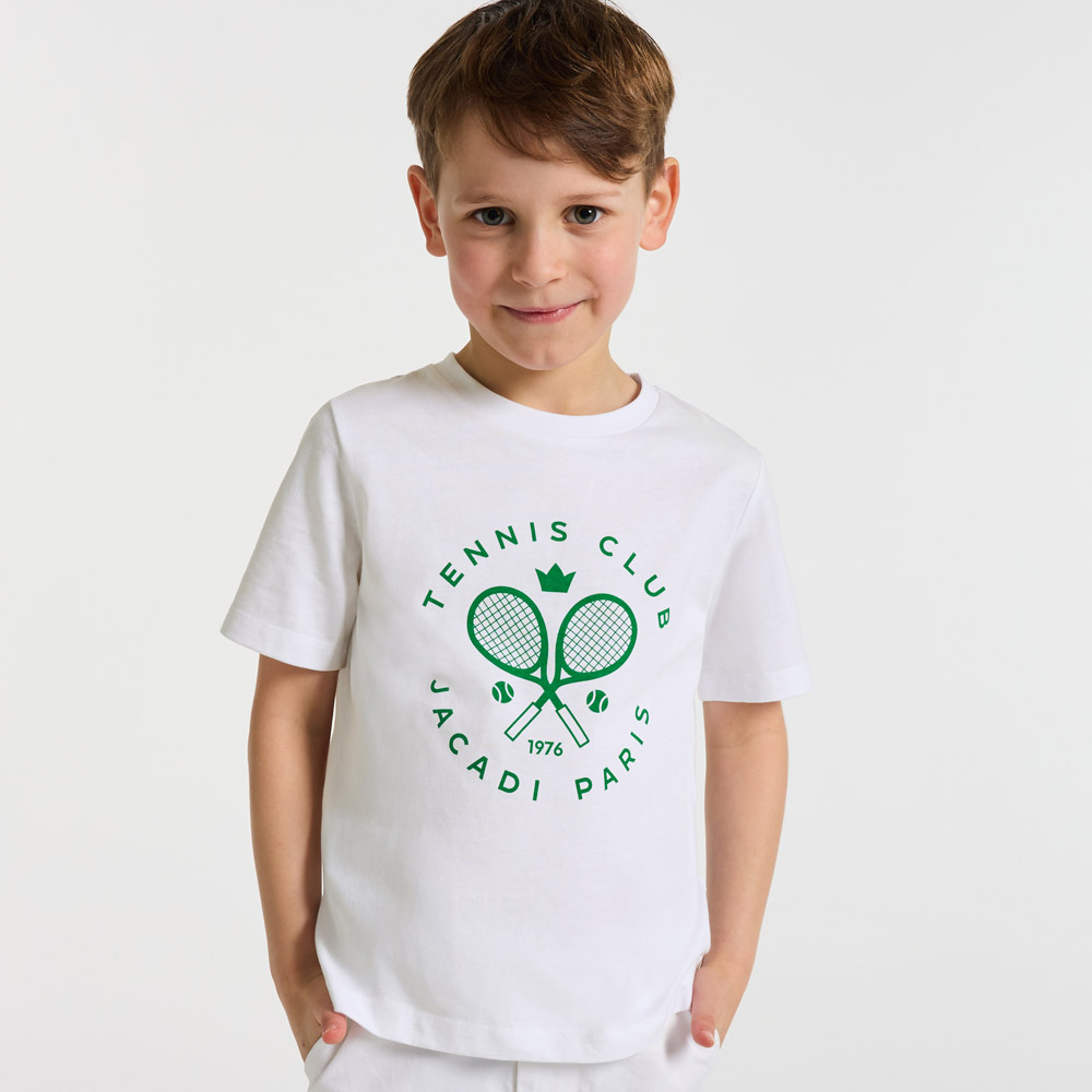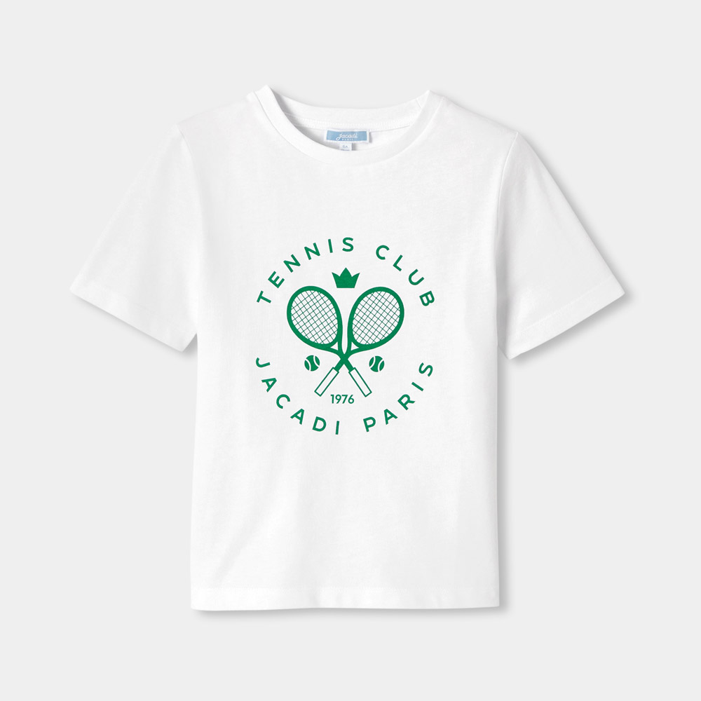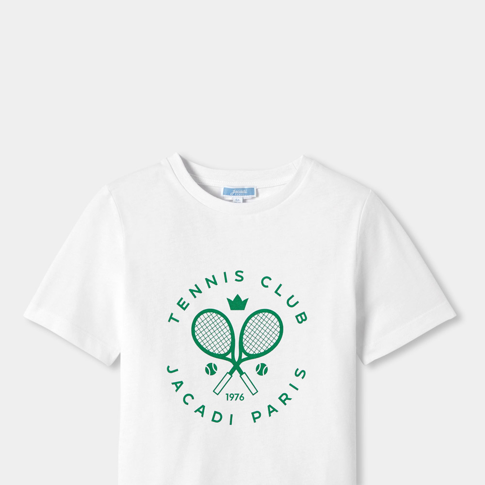 Le t-shirt enfant intègre le Tennis Club Jacadi pour le printemps. Décliné en coton souple et léger, ce basique preppy sport inspiré du vestiaire universitaire se portera facilement avec un chino retroussé ou un bermuda.