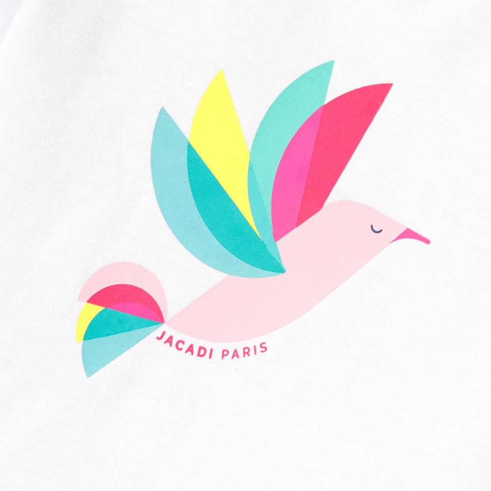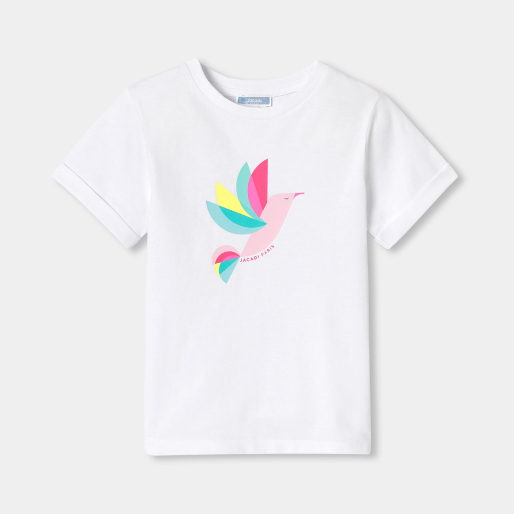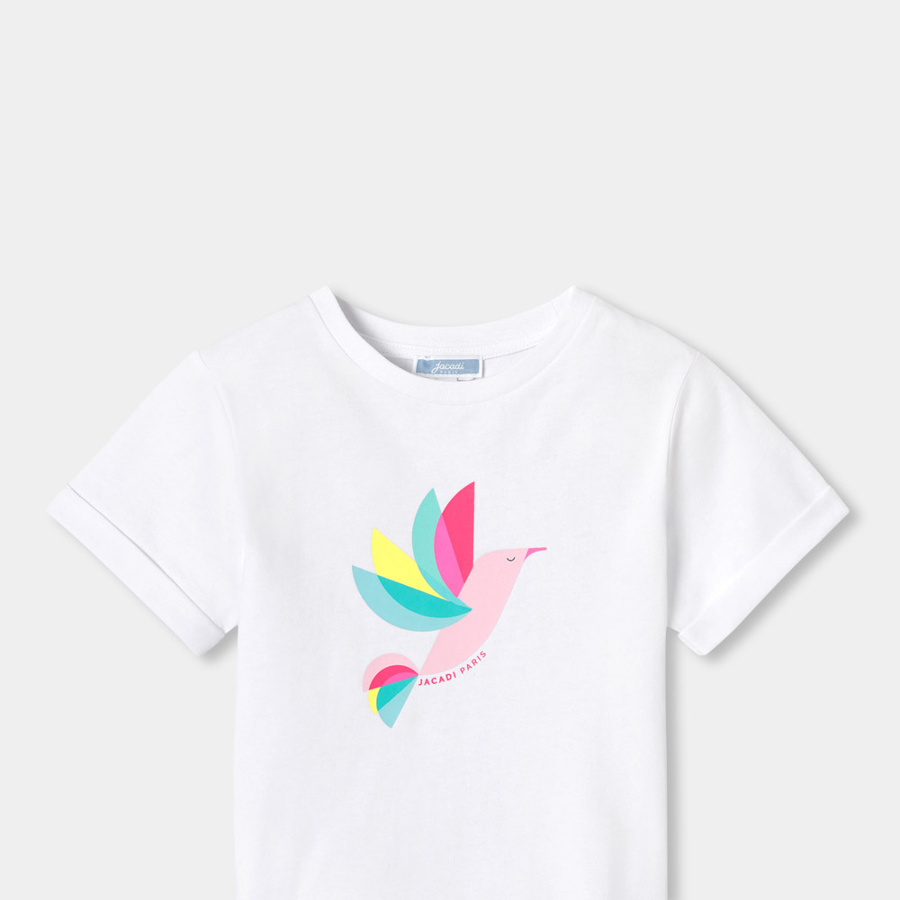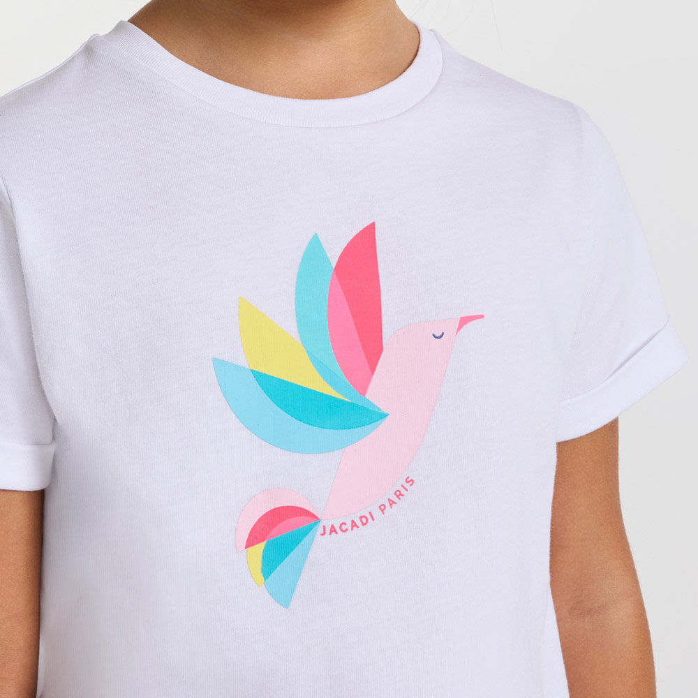 Animé d’un oiseau multicolore pour l’été, ce t-shirt enfant fille en coton à accorder à un pantalon large en popeline ou un short trouvera directement sa place dans la valise pour les vacances.